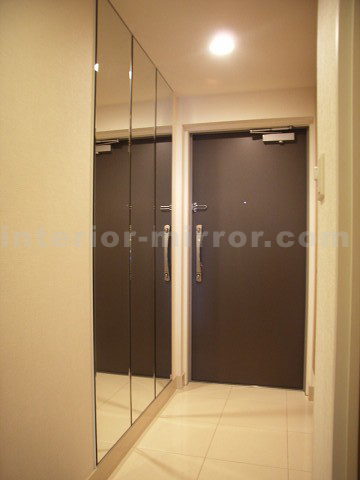 本日の工事は面取りミラーを3枚玄関に取り付けました。